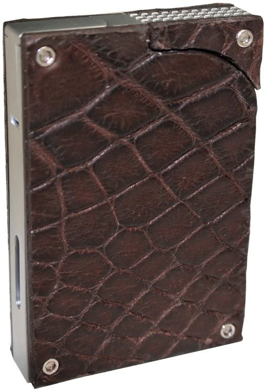 Genuine alligator pattern leather was expertly wrapped around this Porsche Design lighter by Brizard and Co. for an elegant look that will be admired. This timeless design makes this lighter ideal for bringing along wherever you go. Its sleek body makes it easy to slide this lighter into a pocket when you are getting ready to go out. A single action ignition system allows you to produce a powerful torch flame in an instant. This wind resistant flame will quickly light your cigar for you to enjoy. A fuel window on the side of this lighter allows you to see when it needs more butane so you never run dry unexpectedly. Wind Resistant Torch Flame Single Action Ignition Fuel Level Viewing Window Butane Refillable Lighter Genuine Tobacco Brown Alligator Pattern Leather