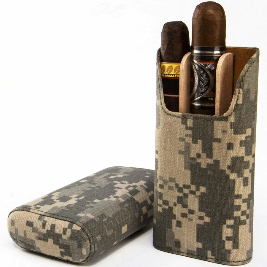 The pixelated greenish gray camouflage pattern of the US Army can be found on this incredible cigar case from Brizard and Co. With a cedar lined interior, this crushproof case is ideal for storing a few of your favorite cigars. It includes two cedar separators that can be adjusted or removed as needed to fit your cigars. This telescopic case features a frontal opening that allows you to see the bands of your cigars as soon as you open it. You won’t have turn the case upside down or remove any of your cigars to find the one you want to smoke. Highly attractive and convenient, be sure to order one today! Show Band Design Cedar Lined Interior Removable Cedar Separators Hand Crafted US Army Camouflage Pattern
