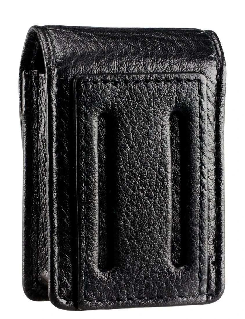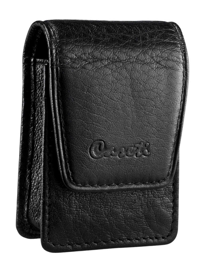 Protect your beautiful Caseti lighter in this stylish lighter case. Designed to fit on your belt, this case offers a large pocket for your lighter with a thin pocket for a small amount of cash. Compact and light, the smooth leather exterior adds to your style. A magnetized flap stays closed under the Caseti branded polished plate until you are ready to retrieve your lighter. Approx. Dimensions: 2.89″ (length) x 1.93″ (width) x 1.22″ (height) Approx. Weight: .8 oz. Smooth Black Leather Finish Manufacturer’s Two Year Warranty Arrives in a Blue Caseti Gift Box Magnetized Cover Polished Plate with Caseti Brand Belt Loops Engraving not offered on this item
