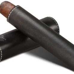 BrizardSunrise Black Leather And Ebony Single Cigar Tube – Made In USA
