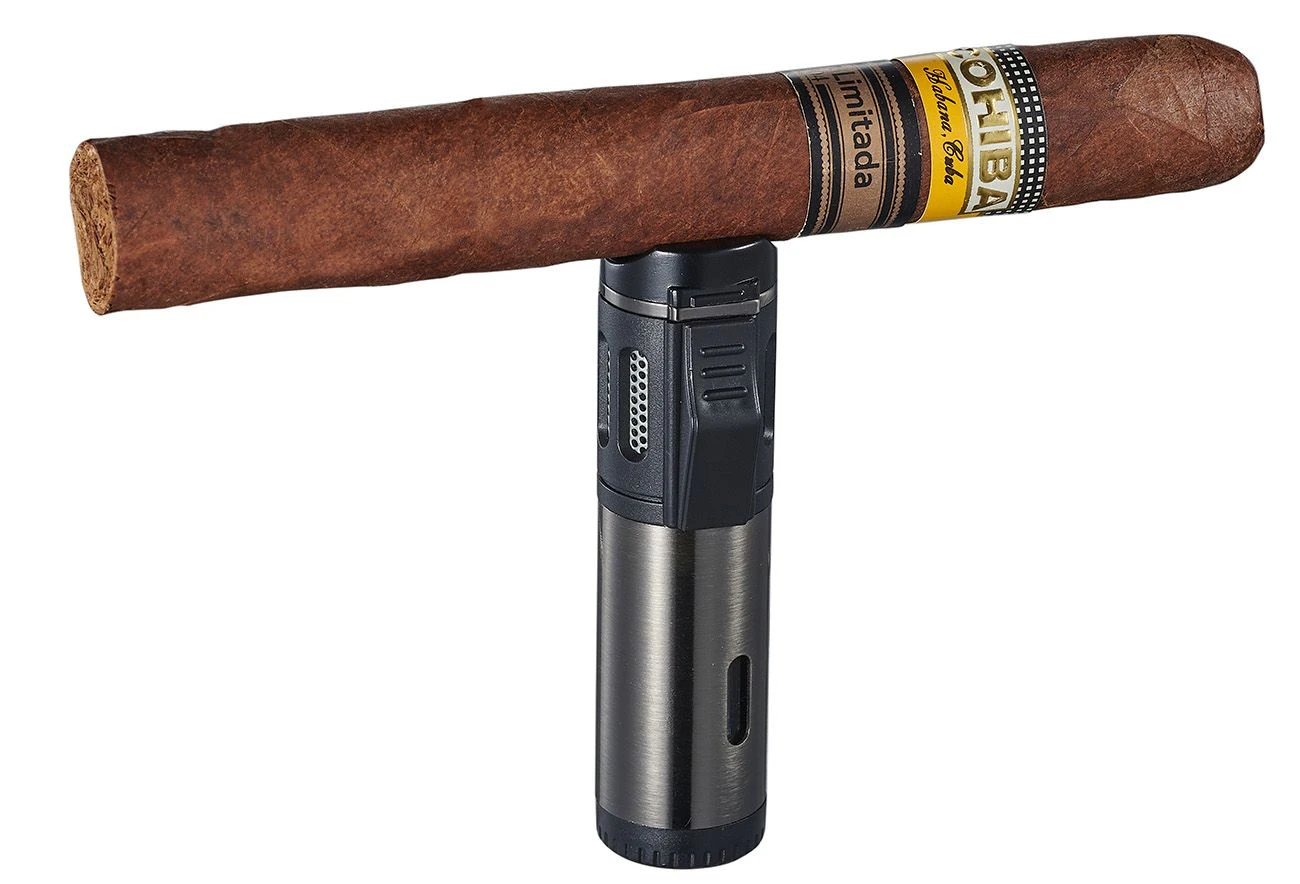 The Visol Artemis Triple Flame Torch Lighter comes in a unique cylindrical design. With a Gunmetal body accompanied with black plastic accents, this lighter creates a sophisticated feel. The light metal and plastic body comes with an easy to use flame adjuster located at the bottom of the lighter. This Triple Jet Wind-Resistant Flame is brought to life with an ergonomic ignition switch. With a fuel level viewing window on the side, this lighter keeps you alert on when to refill with butane so you’ll never unexpectedly run empty. Please note that this product ships with no butane due to shipping regulations. Gunmetal Metal Body and Black Plastic Finish; Light Metal Body Triple Jet Wind-Resistant Flame; Dual Action Ignition (Flip the Top and Press the Ignition); Approx. Dimensions – Length: 3.31 inches, Width: 0.875 inches, Thickness: 0.875 inches; Approx. Weight: 0.125 pounds Butane Refillable Lighter with Adjustable Flame Height; Lighter Does NOT Come Filled with Butane Comes Packaged in a Cardboard Box that is Easy to Gift Wrap