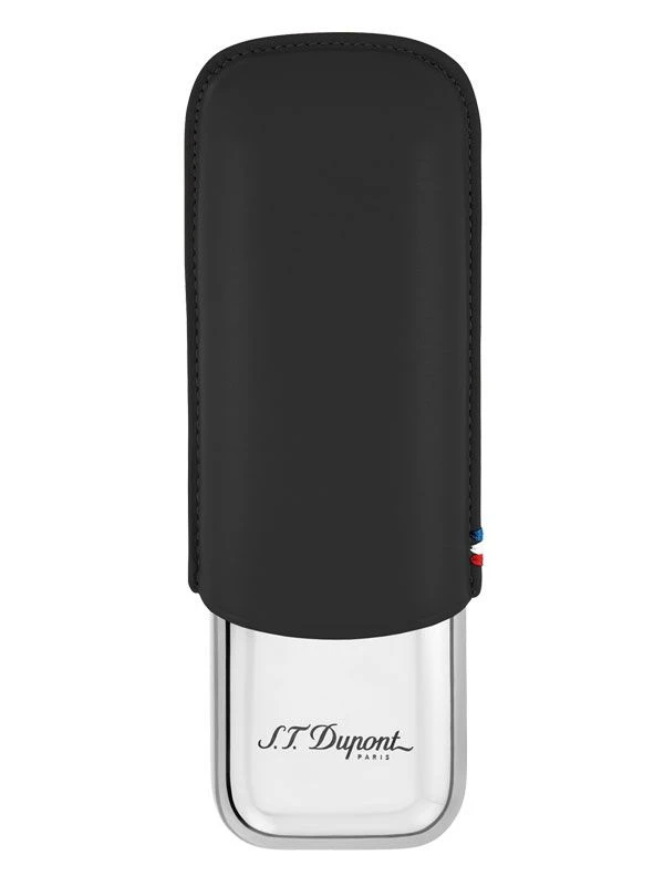 Black Leather Finish with Chromed Stainless Steel Tube; S. T. Dupont Logo Engraving on