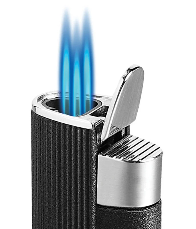 A simple rigged texture defines the Diablo Cigar Lighter by Vector. Featuring three powerful butane jet flames, an retractable cigar punch and an easy to use thumb trigger, the Diablo is a great addition to any collection. Wind Resistant Triple Torch Flame; Three Individual Torches Create a Concentrated Trio of Butane Flames Retractable Cigar Punch at Base of Lighter Single Action Ignition; Push Down Trigger to Expose Triple Torch Emitter