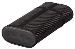 The Trinity is a beautiful cigar case made with genuine black leather. With an outer layer of real carbon fiber, the Trinity is definitely eye-catching. Your larger ring gauge cigars will be safe inside this crush proof designed case no matter where you take it. No need to worry about your cigars drying out, thanks to the airtight closure and cedar lined interior. Impress your cigar buddies, with the Trinity.