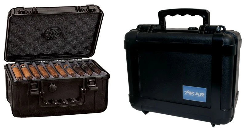 A large travel humidor from Xikar is perfect for moving large numbers of your cigars at once. Fitting around 50 to 80 cigars, depending on their size and ring gauge, this humidor will keep your cigars completely safe as you travel. The locking clasps ensure the humidor will remain closed until you open it, and you can even add extra security with the molded lock ring. Its strong, plastic body can’t be crushed and the silicone seal will keep water and air from getting into the humidor. Inside the humidor your cigars will be cushioned against a high density foam that won’t let your cigars be jostled while the humidor moves. There is even a humidifier that maintains an optimal humidity level for your cigars. Lifetime Warranty Exterior Dimensions: 12 in x 9 in x 6 in Holds Around 50-80 Cigars Includes Small Humidifier