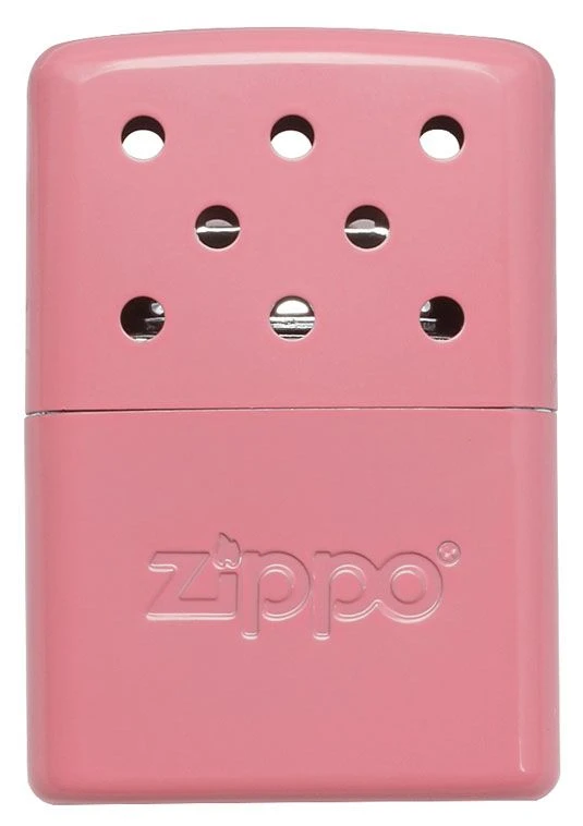 When the weather outside is frightful, you can always count on your Zippo handwarmer! This compact pink companion is ready to provide 6 hours or warmth and comfort from inside you pocket! The casing features an odorless design, so you’re welcome to take it anywhere including hunting! Slim Design; Pink Matte Finish Exterior; Metal Body Provides up to 6 Hours of Heat; Reusable Dimensions: (L) 4 inches x (W) 2.75 inches Comes with Refill Guide & Warranty Information; Refill With Zippo Lighter Fluid Ideal for Ski, Hunting, Fishing, Stadium, Hunting, Outdoor activities Packaged in Cardboard box; Made in Taiwan by Zippo
