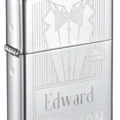 You may not know this, but your best man and this personalized Zippo have a lot in common! He’s a dependable guy that’s been there for you through good and bad times! This Zippo lighter is also dependable and will always support him with a wind-proof flame and lifetime warranty. Just like he’s always been by your side, this lighter will always be at his side to provide him outstanding service with a click! With his name engraved on the nameplate, he’ll have a memento from your big day that won’t sit in his closet unused! Best Man & Tux Engraved Design on High Polish Chrome Finish Flint Ignition; Windproof Flame; Signature Zippo Click Dimensions: (L) 2.25 in x (W) 1.5 in x (H) 0.5 in Made in the USA; Zippo Lifetime Guarantee; Recommend Use of Zippo Lighter Fluid Comes Packaged in Black Zippo Branded Box