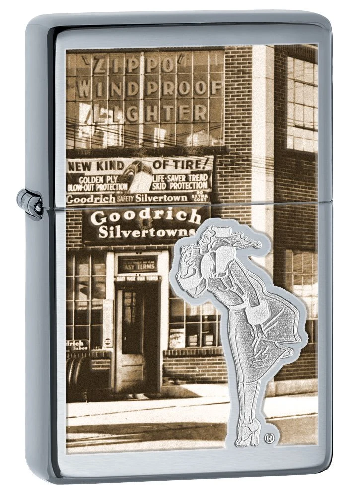 A proud product of USA, this Vintage Zippo features the iconic Rickerson & Pryde building, the location of the first Zippo factory. This lighter has a high polish chrome finish and a vintage touch that is accented by an engraved image of the famous Windy girl. A creative blend of old and new, this lighter can be refilled with lighter fluid and replaced with flints. Quite a solid metal construction, this lighter has a hinged lid and comes with a Zippo lifetime guarantee. Approximate Dimensions: (H) : 2.25″ (W) : 1.52″ (D) : 0.52″ Approximate Weight: 1.94 oz Flint Lighter Uses Lighter Fluid (Ships Empty) Color Imaging and Windy Girl Emblem Windproof Flame and Signature Zippo “Click” Made in the USA; Zippo Lifetime Warranty Comes in Zippo Branded Box If you would like your Zippo lighter to become a torch flame lighter, we recommend you buy a Z-Plus Zippo lighter insert. For cases and butane refills for your Zippo lighter, we recommend checking out our Zippo Accessories.