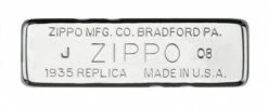 This 1935 Zippo Replica brings with it a nostalgic feeling as Zippo brings back the design from its early years. There quite a few differences between modern Zippo lighters and Zippo lighters from the 1930s. Such as the flat surface on its top and bottom, and the slashes on the opposite corners of the front and back surfaces. Another prominent example of these differences is the external three barrel hinge instead of the five barrel internal hinge. Also the striking wheel is held in place by an open hollow rivet. There is even a 1935 Replica stamp on the bottom of the lighter identifying it. Approximate Dimensions: Height : 2.22 inches Width : 1.52 inches Thickness : 0.52 inches Approximate Weight: 1.94 oz Flint Lighter 1935 Replica Design Made in USA Brushed Chrome Finish Exclusive 1935 Replica Stamp Uses lighter fluid Free Engraving on First Line If you would like your Zippo lighter to become a torch flame lighter, we recommend you buy a Z-Plus Zippo lighter insert. For cases and butane refills for your Zippo lighter, we recommend checking out our Zippo Accessories.